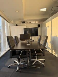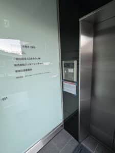 - ビルに入りましたら、エレベータ左横のインターフォンで「901」を押してください。当事務所の受付がセキュリティを解除し、エレベーターの9階のボタンを押せるようにいたします。
